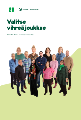 26kaarinanvihreat.fi Valitse vihreä joukkue Äänestä vihreitä Kaarinassa: 103–130